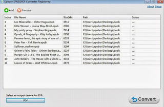 Simplemente tienes que añadir los documentos en la ventana principal de Epubor EPUB2PDF y pulsar el botón de conversión. Los archivos se guardarán automáticamente como PDF común.